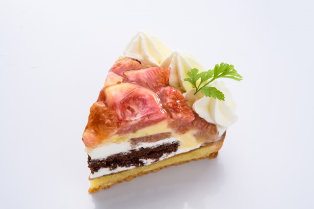 アーモンドクリームの入ったタルト生地を焼いた上に、カスタードクリーム、ココアのスポンジ、たっぷりのバナナと生クリームがのっています。